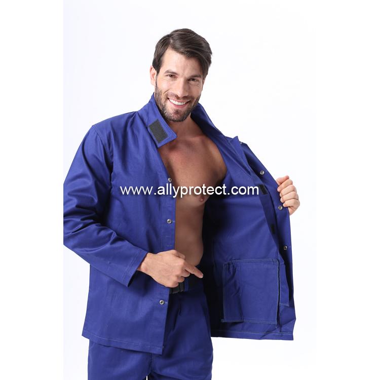 - 產(chǎn)品描述: 藍色防火阻燃服,可水洗不縮水,推薦適用于燒焊、鑄造、化工、石油、機電等有火焰或火警的危險行業(yè)。