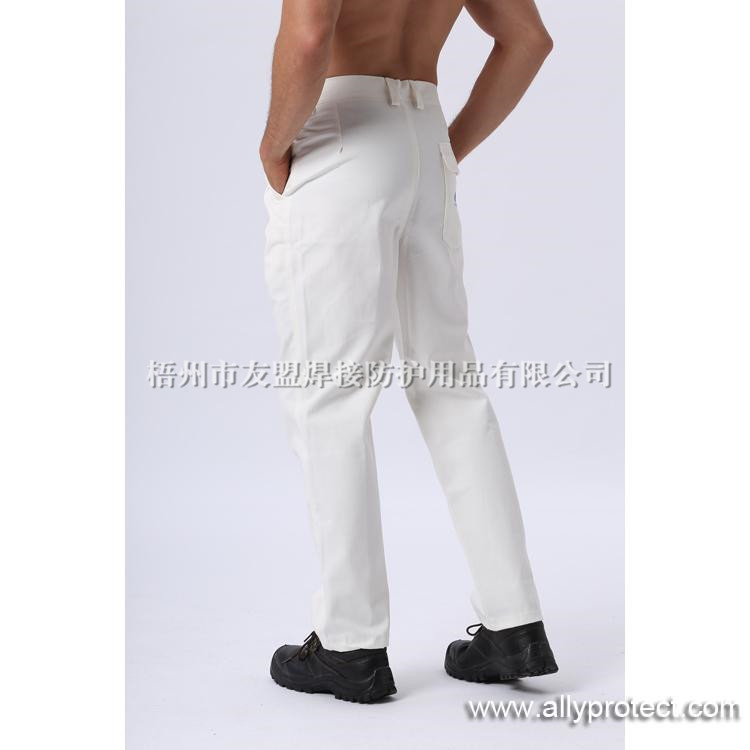 - 產(chǎn)品描述: 白色防火阻燃褲,可水洗不縮水,推薦適用于燒焊、鑄造、化工、石油、機(jī)電等有火焰或火警的危險(xiǎn)行業(yè)。