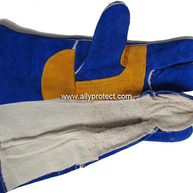 - 產(chǎn)品描述: [ AP ]彩藍色牛二層皮全皮電焊手套,斜拇指、加寬護掌層和護腕設(shè)計,適用于焊接、切割及搬運等用途。